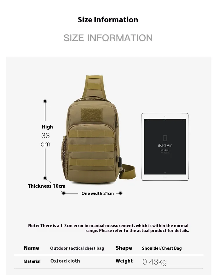 We understand the need for a roomy yet lightweight bag, which is why our Outdoor Lure Camouflage Large Capacity Multi-functional Men's Shoulder Crossbody Tactical Chest Bag is designed to be spacious, stylish, and highly functional. Perfect for camping, hiking, fishing, and tactical missions.