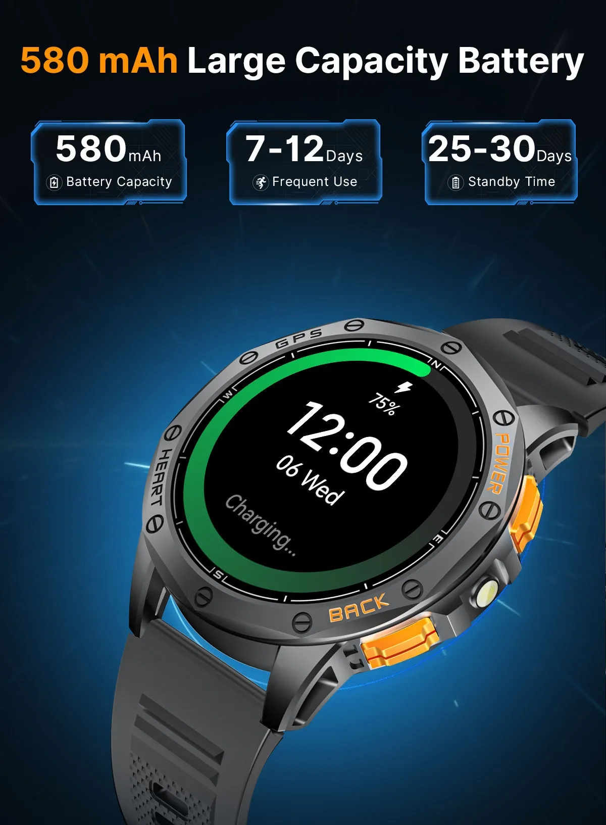 Long Battery Life for Extended Use: With up to 7 days of battery life, the Outdoor MD53 Smart Watch is