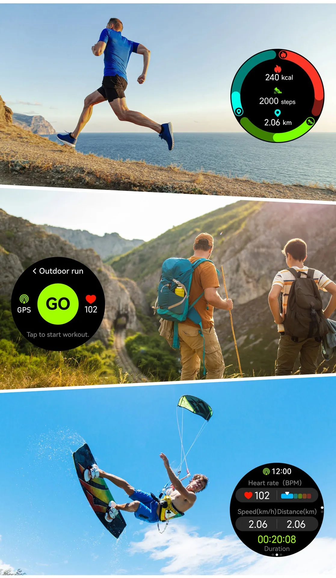 Sports Tracking: Monitors various sports activities, including running, cycling, swimming, and more, giving you real-time