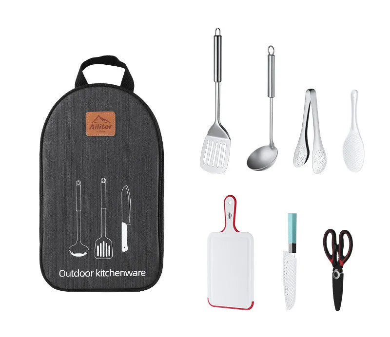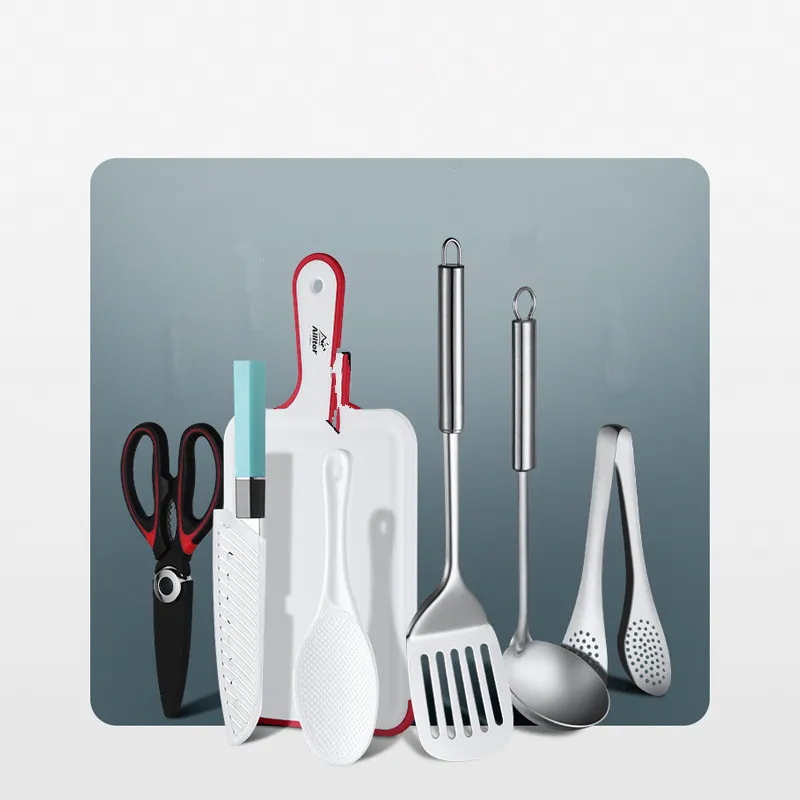 Included kitchenware: spatula / pot spoon / clip / scissors / kitchen knife / cutting board / rice spoon