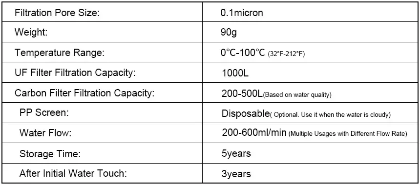 - Filters up to 1000 liters of water for long-term use
