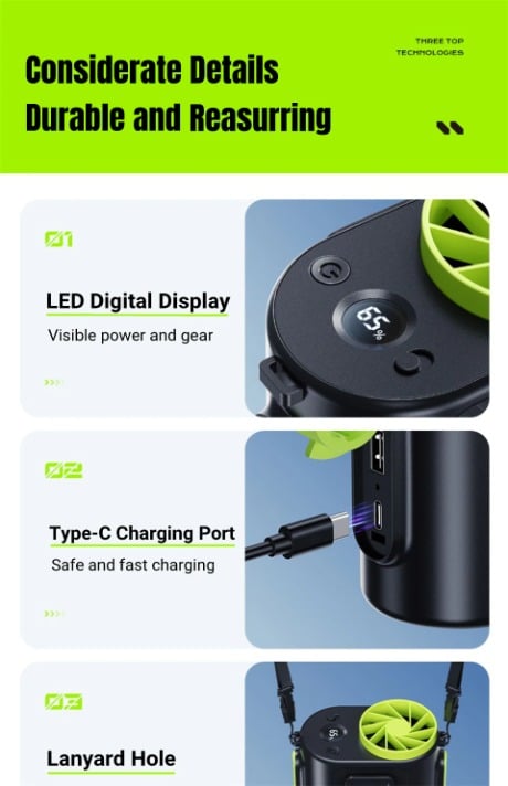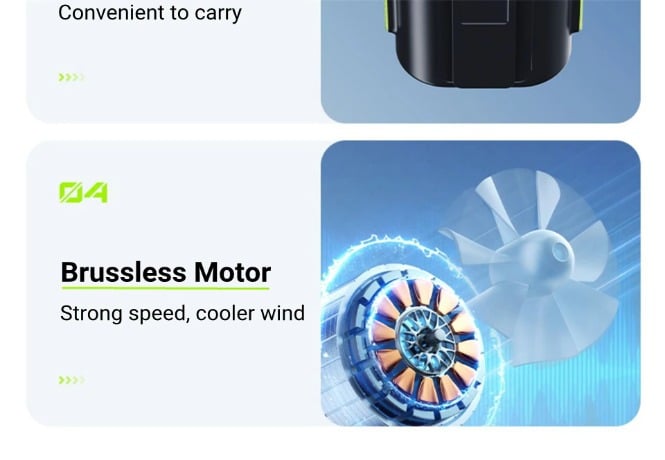 4. High-quality brushless motor, silent operation and strong wind power;