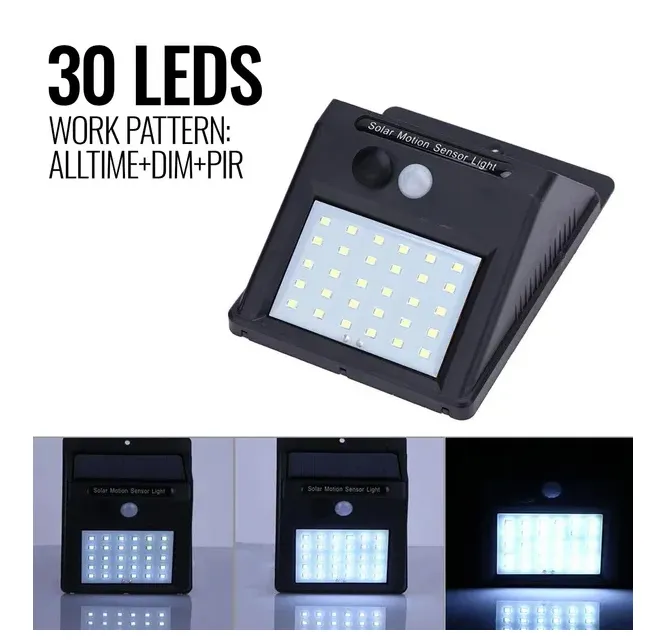- 30 led motion sensor lights: there are 30 powerful leds and the motion angle is 120 degrees which can provide excellent illumination, light up your way home brightness and ensure safety. motion sensor: when the motion sensor lights is detected within 3-5m, it will turn on automatically in darkness or at night. waterproof ip65 and durable: made of high-impact abs capable of withstanding rain, snow, and other extreme weather. waterproof and heatproof. outdoor solar security lights can be