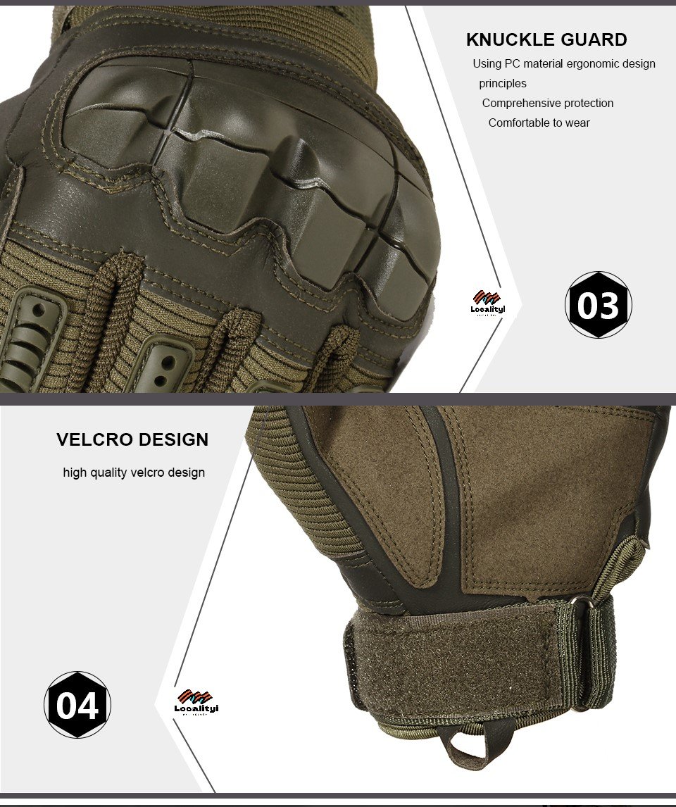 These protective gloves are crafted from high-quality materials to ensure durability and long-lasting performance. The reinforced padding and protective layers are designed to safeguard your hands from abrasions, impacts, and harsh outdoor conditions, making them essential for rugged activities.