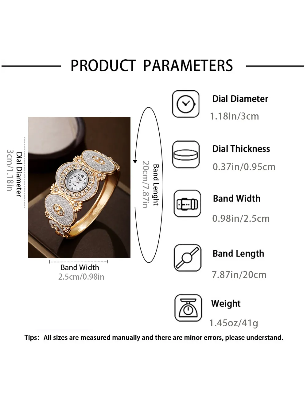 This bangle watch is powered by reliable quartz movement, ensuring that it provides accurate timekeeping with minimal maintenance. Quartz watches are known for their precision, making them a dependable option for those who need a hassle-free timepiece that keeps them on schedule throughout the day.