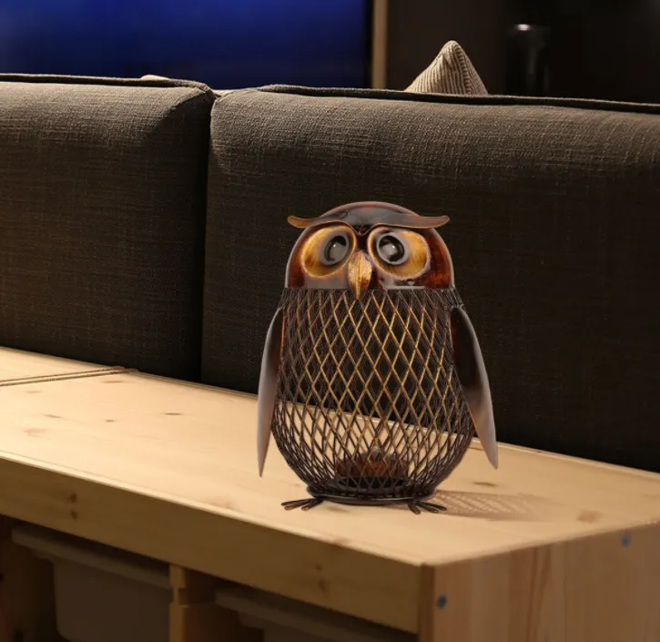 Whether placed on a shelf, desk, or bedside table, this metal owl piggy bank brings a touch of wisdom and elegance to your living space while encouraging good saving habits.