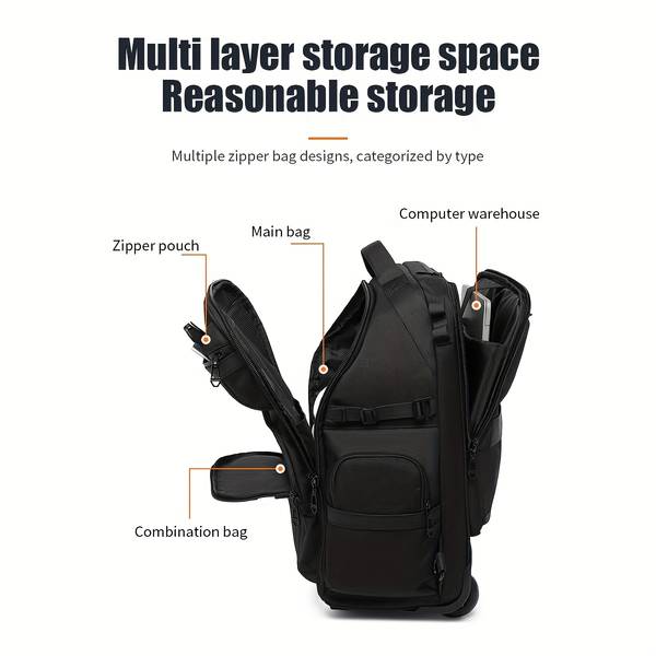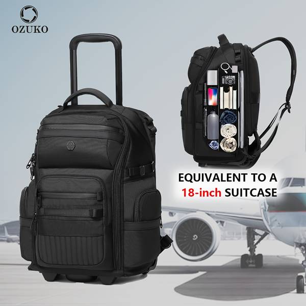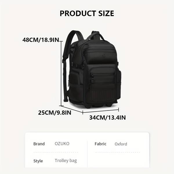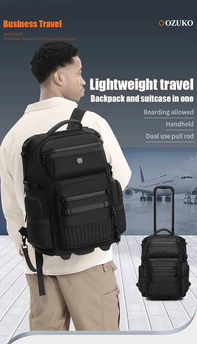 The OZUKO Business Travel Backpack stands out for its multifunctional design, combining the convenience of a rolling trolley with the comfort of a backpack. The high-quality oxford fabric and aluminum alloy frame ensure durability, while the large capacity and multiple compartments provide enough space for all your travel essentials. Whether you’re traveling for business, leisure, or as a commuter, this bag offers flexibility, comfort, and security in one stylish package.