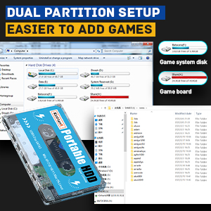- [Built-in 111700+ games] Pre-installed 84 emulators, built-in 111700+ games including 5000+3D games,.This mini hard drive also supports to save game progress,add your own games,very easy and very practical.