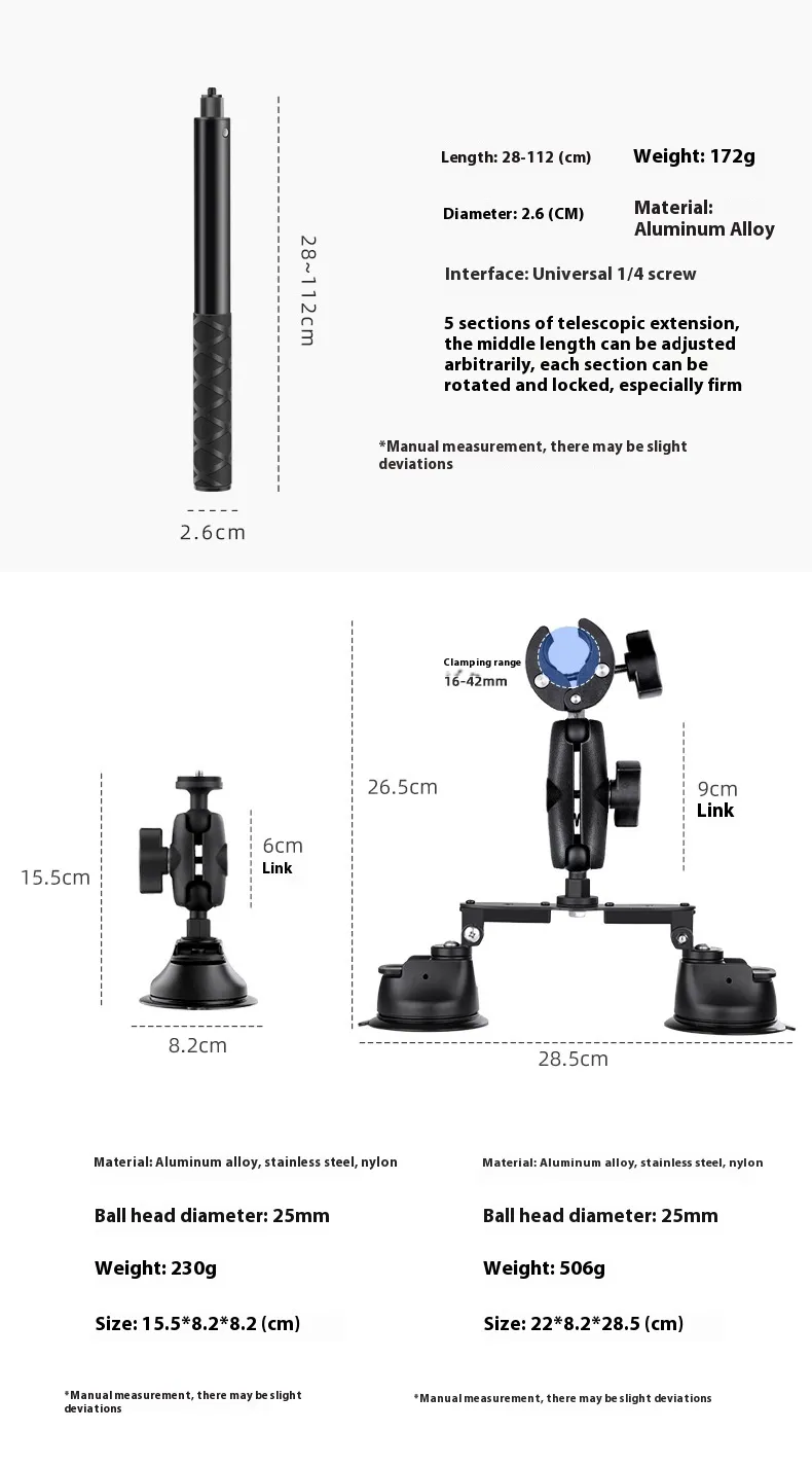 The bracket allows 360° rotation and adjustable angles, providing flexibility for different shooting scenarios. Perfect for road trips, motorsport filming, drone mounts, or travel vlogging, it adapts to your filming needs while remaining compact and portable.