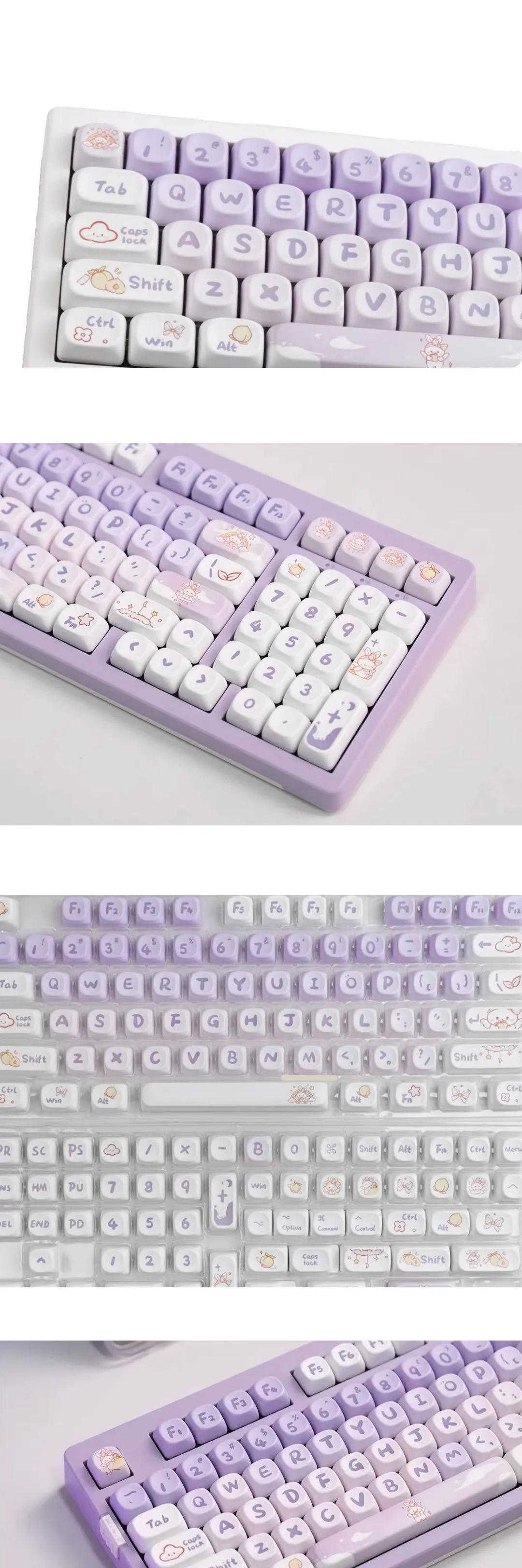 These keycaps are not just for looks—they are fully customizable to fit your mechanical keyboard. The Coeco branding ensures that these keycaps are compatible with most MX-style switches, offering you the flexibility to personalize your setup. You can mix and match these gradient purple rabbit keycaps with other keycap sets or use them for specific functions like WASD for gaming, or for an entire keyboard makeover.