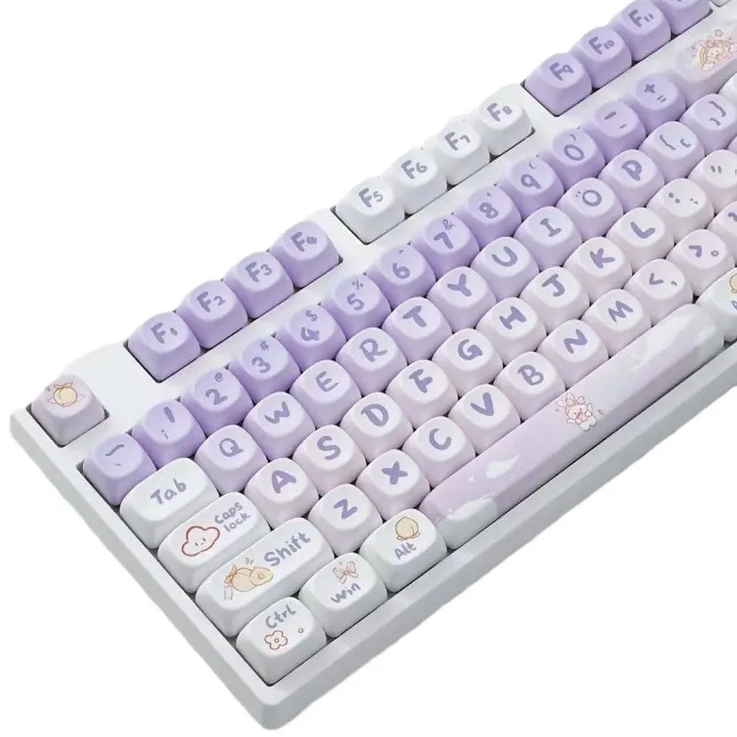 Whether you're a gamer who enjoys a bit of flair in your setup, a typist who wants a comfortable and fun typing experience, or a keycap collector looking to add a unique design to your collection, the PBT Gradient Purple Rabbit Key Cap Coeco offers both practicality and aesthetics. The keycaps are designed to enhance your typing or gaming performance while adding personality to your workspace.