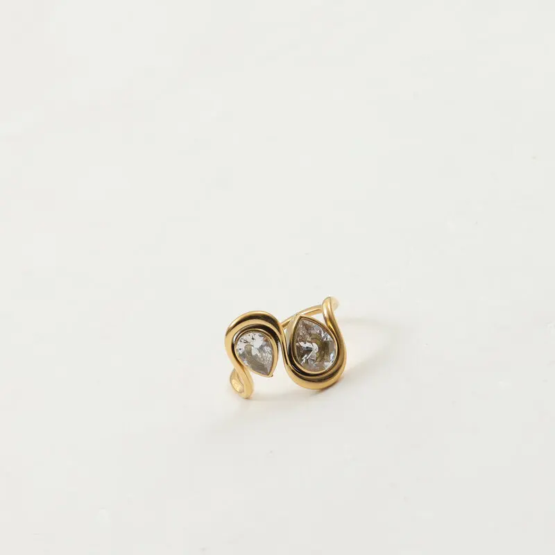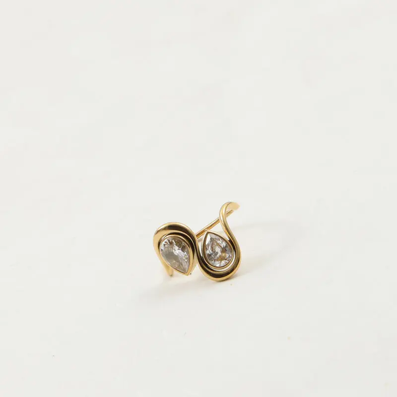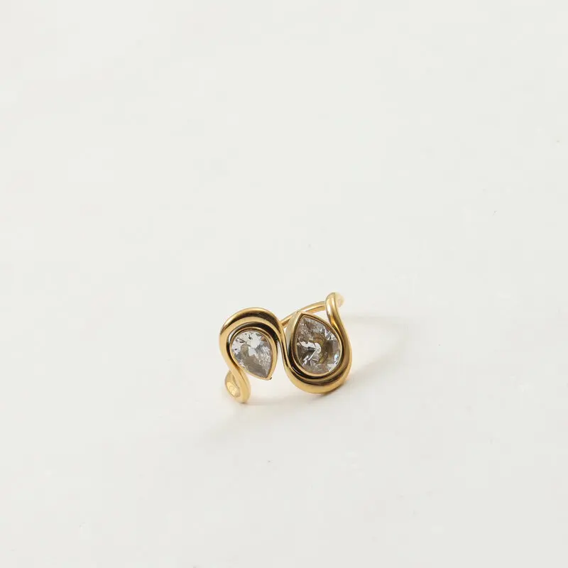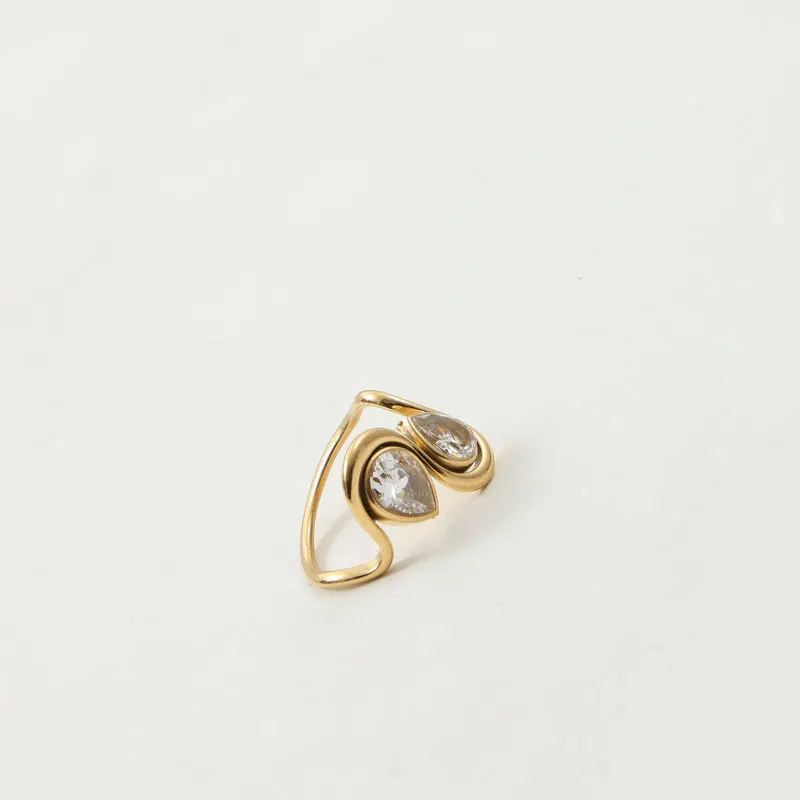 With its classic bezel setting, sparkling CZ stone, and luxurious gold-plated finish, the Pear with Pear CZ Stone Ring is a must-have for any woman who appreciates exquisite craftsmanship and sophisticated design. Make a statement with this gorgeous ring and celebrate love, commitment, and timeless elegance.