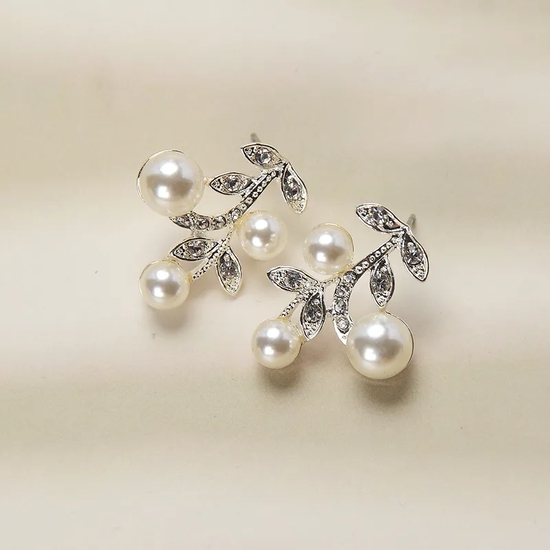 Color: TL282_Style Earpin Silver Bottom White Diamond Rice White Pearl, TL282_Ctyle Earpin 16K Gold Bottom White Diamond Rice White Pearl