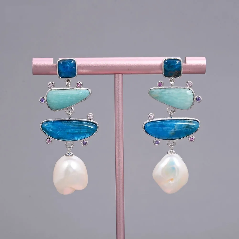Pearl Earrings Blue Apatite Turquoise Pendant