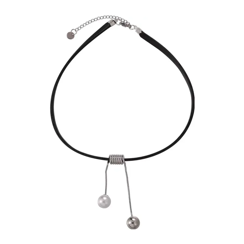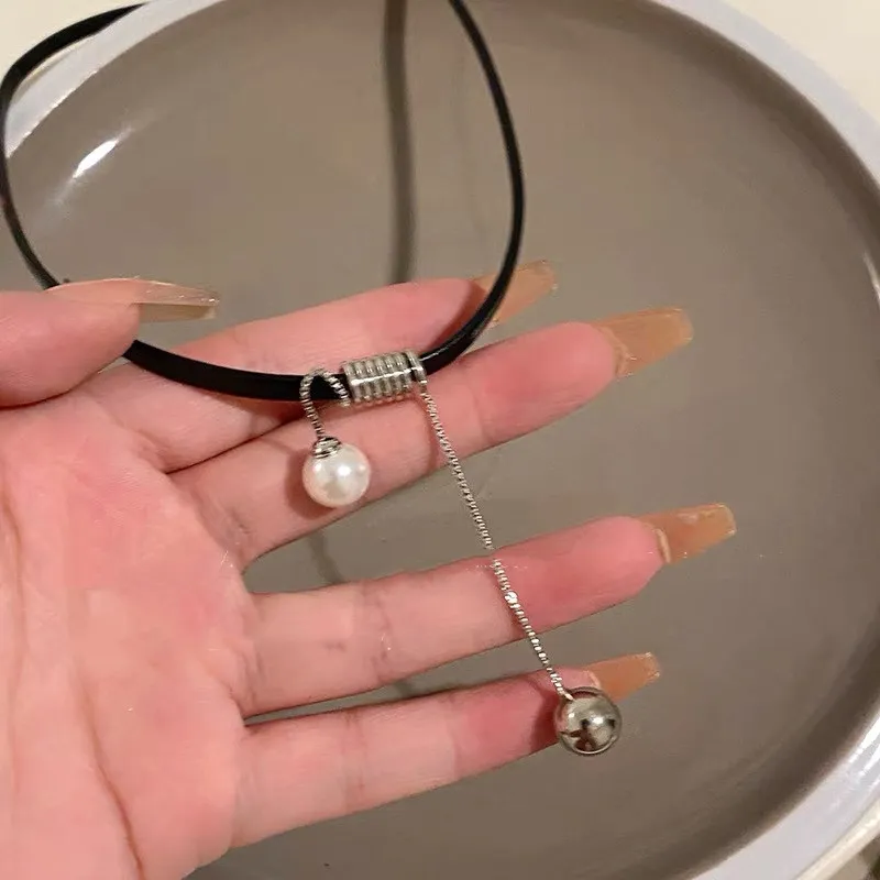 Pearl Tassel Leather Necklace Women