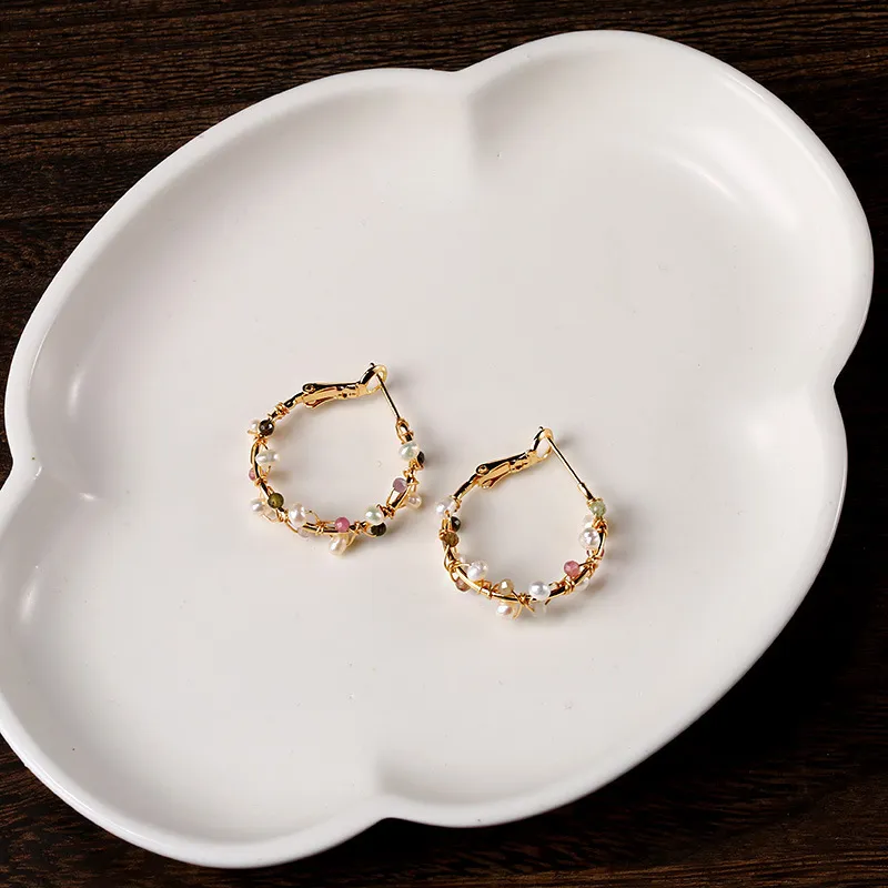Color: tourmaline pearl winding small circle earrings