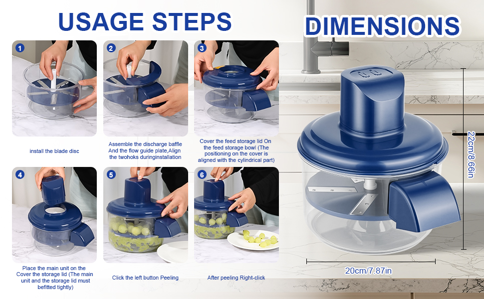 - 【Easy-Clean Detachable Chamber】Cleanup is a breeze! The main processing chamber and all food-contact parts are easily detachable and can be rinsed clean under water. Prevents food residue buildup, ensuring a sanitary and hygienic peeler for every use. Easy to clean kitchen tools for quick prep and less hassle.