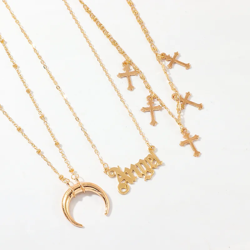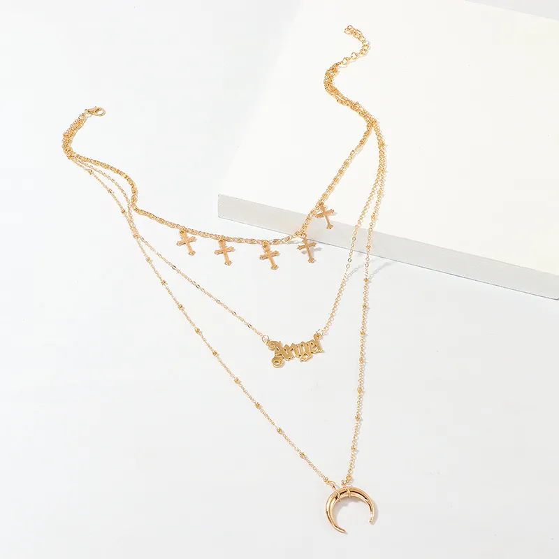 Pendant Metal Crescent Cross Necklace