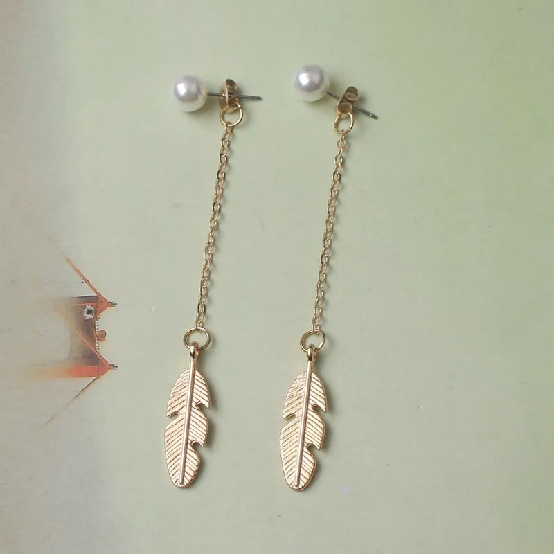 Why Choose Personality Feather Leaf Pearl Tassel Long Earrings?