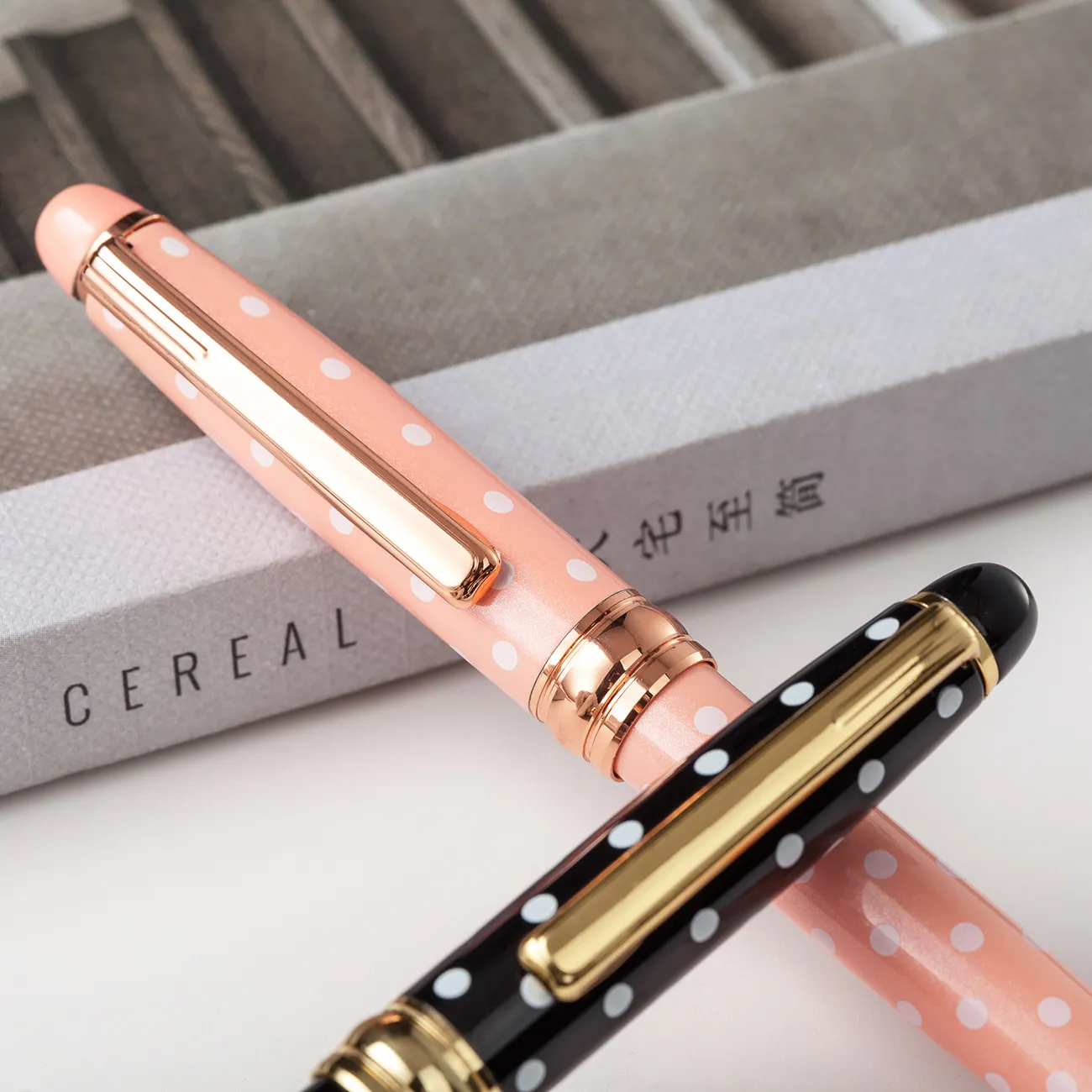 Refill color: pink (white dots), light blue (white dots), white (black dots), white (dark rose dots), black (white dots)