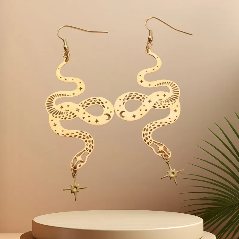 Personalized Design Snake Element Simple Hollow Star And Moon Earrings