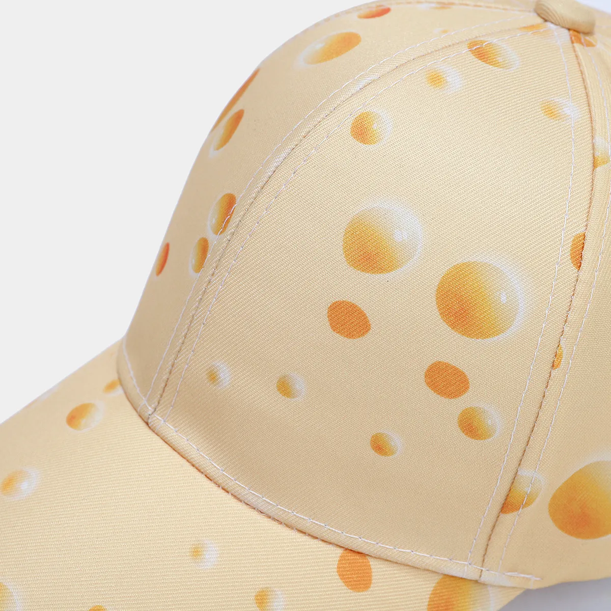 Bold and Playful Design: The cheese pattern adds a whimsical and humorous touch to the classic baseball cap design, making