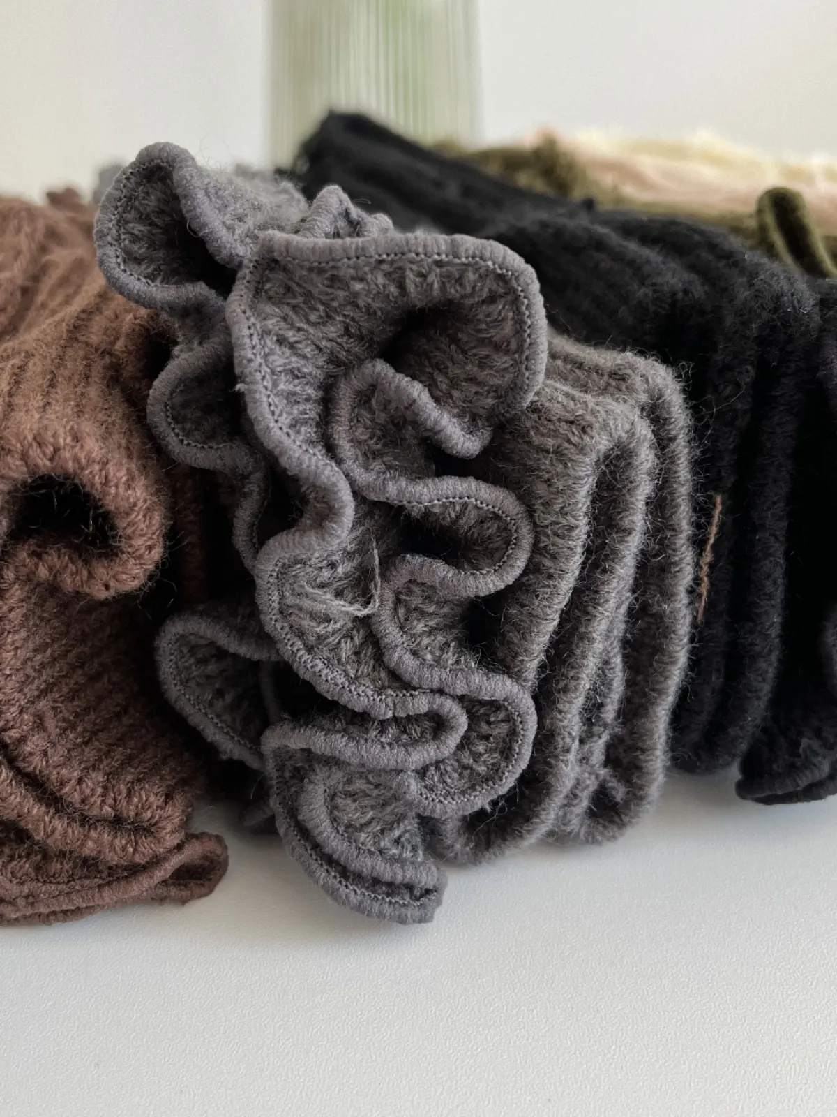 Color classification: brown, army green, dark gray, black, off-white, gray pink.