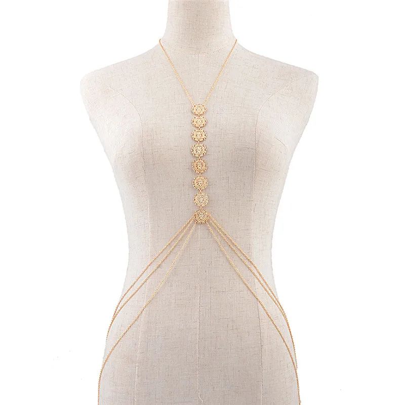 Personalized Retro Ethnic Style Carved Flower Plate Body Chain