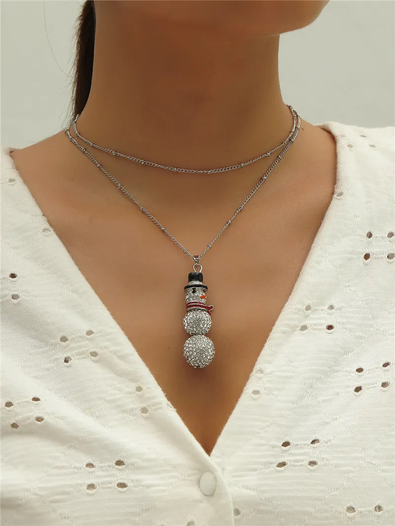 Personalized Zircon Snowman Pendant Clavicle Chain