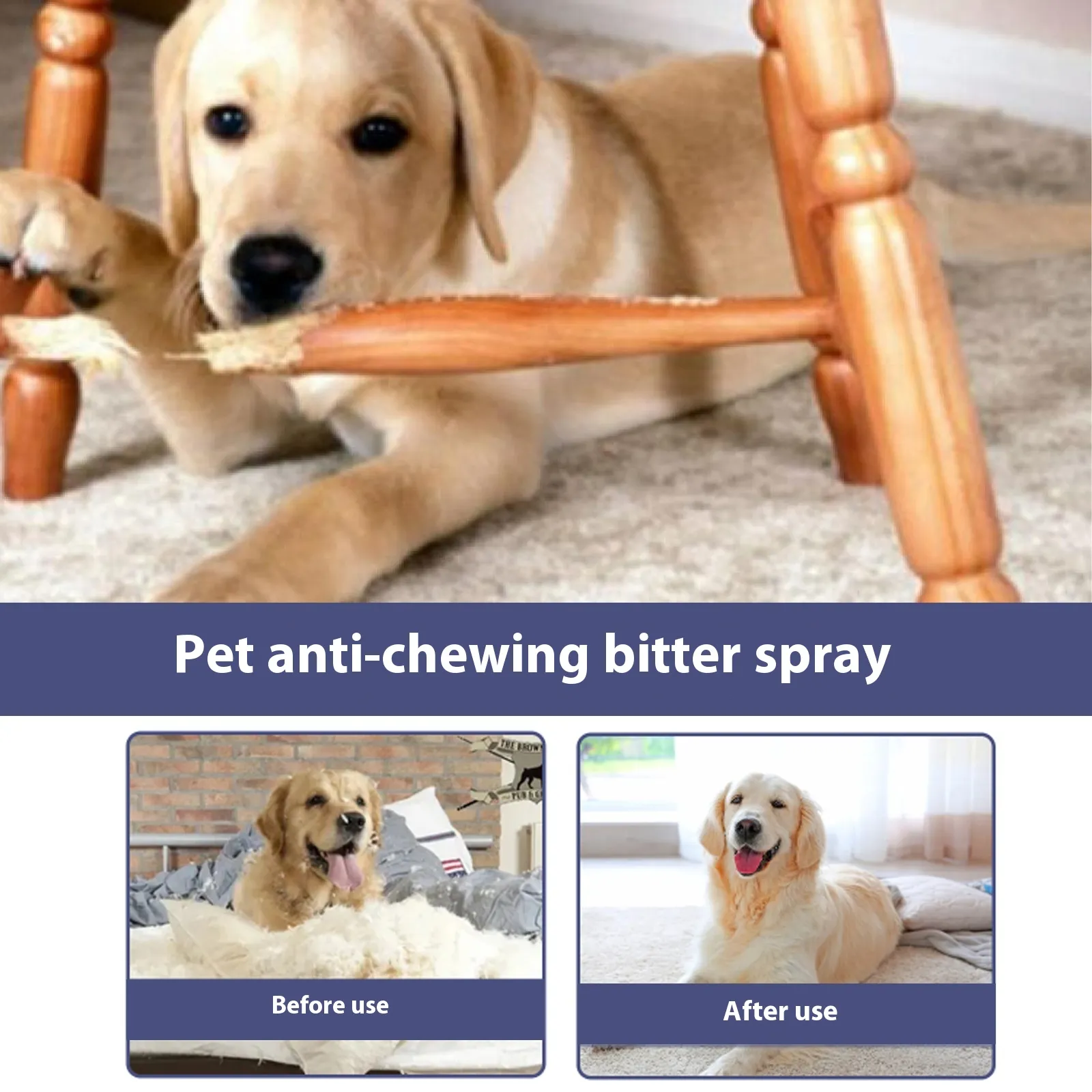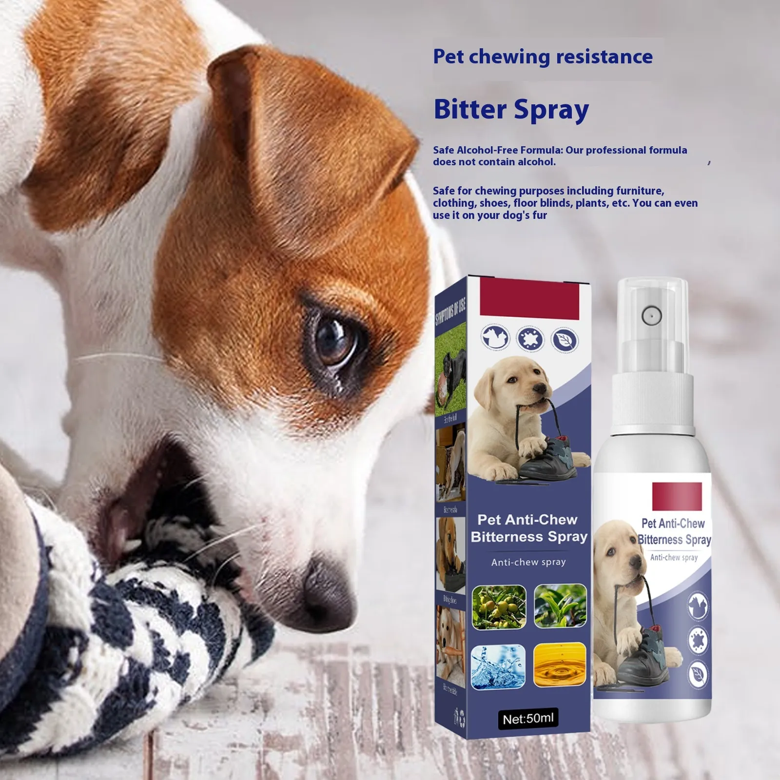 The Pet Bitter Anti-bite Spray is a specially formulated solution that helps to prevent destructive chewing, biting, and scratching by creating an unpleasant taste on surfaces your dog typically targets. This spray is ideal for use on sofas, furniture, shoes, or any area where your dog tends to chew or scratch. The long-lasting formula ensures continuous protection, making it an effective tool for pet owners who want to prevent unwanted behaviors without causing harm or stress to their dog.