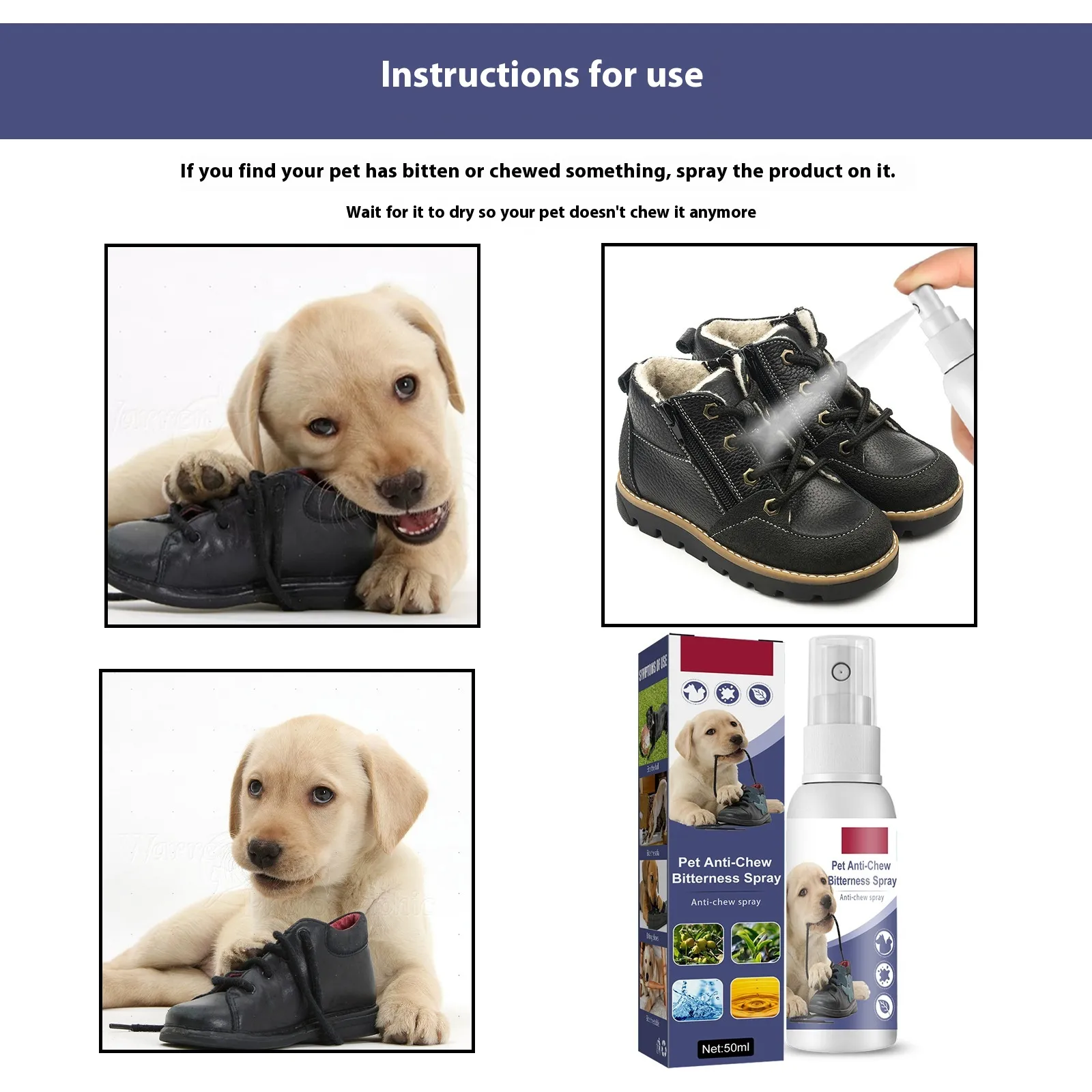 Versatile Application: Suitable for use on sofas, furniture, shoes, and other household items your dog might target.