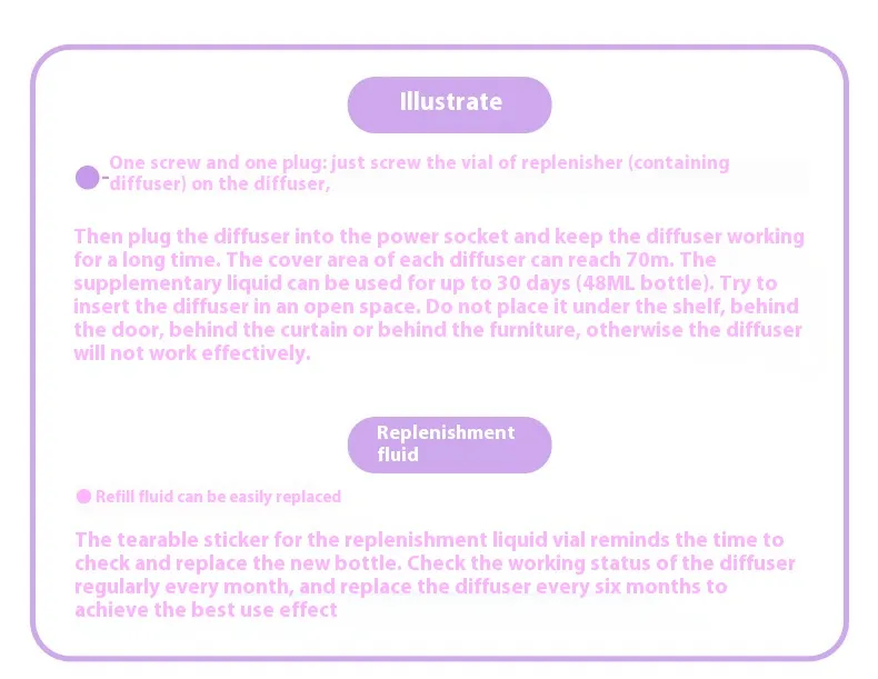 The diffuser is designed for indoor use and is most effective in areas where pets spend the majority of their time, such as living rooms, bedrooms, or open-plan spaces. Its consistent output helps maintain a steady level of calming pheromones, supporting ongoing comfort rather than short-term relief.