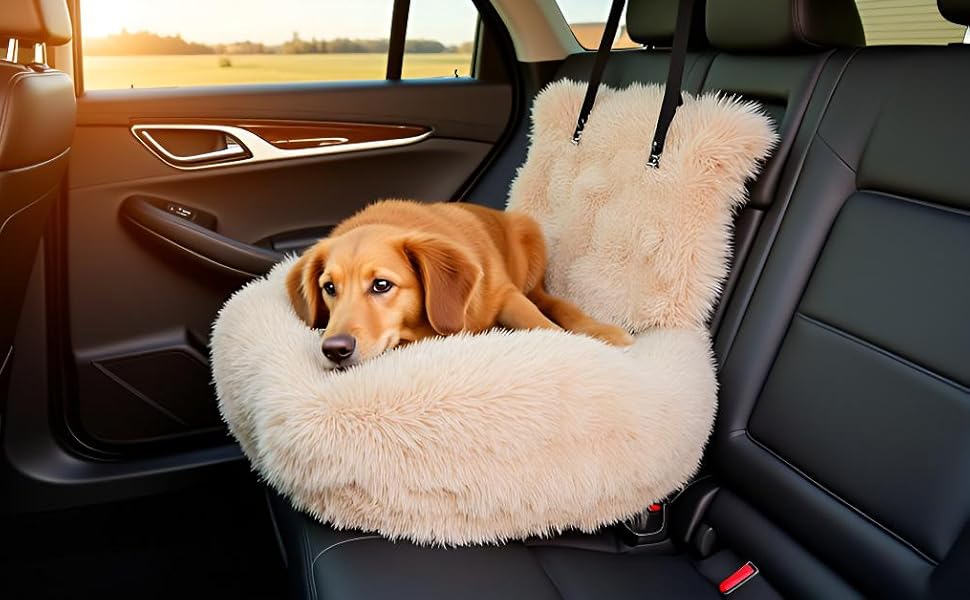 Fluffy Pet Car Seat – Safe & Cozy Travel Bed for Dogs