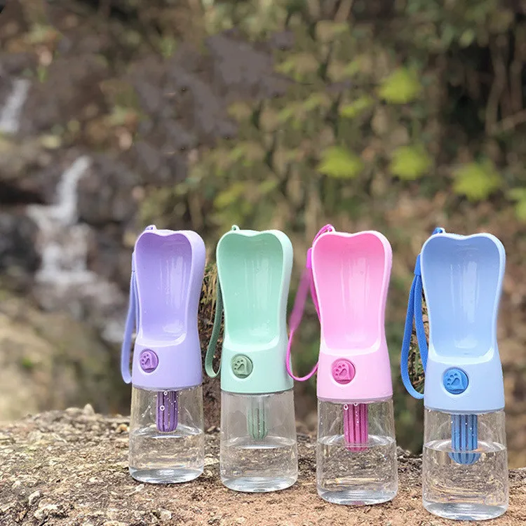 Whether you're exploring a park, hiking up a mountain, or traveling across the country, the Pet Dog Cat Water Bottle Portable Feeder