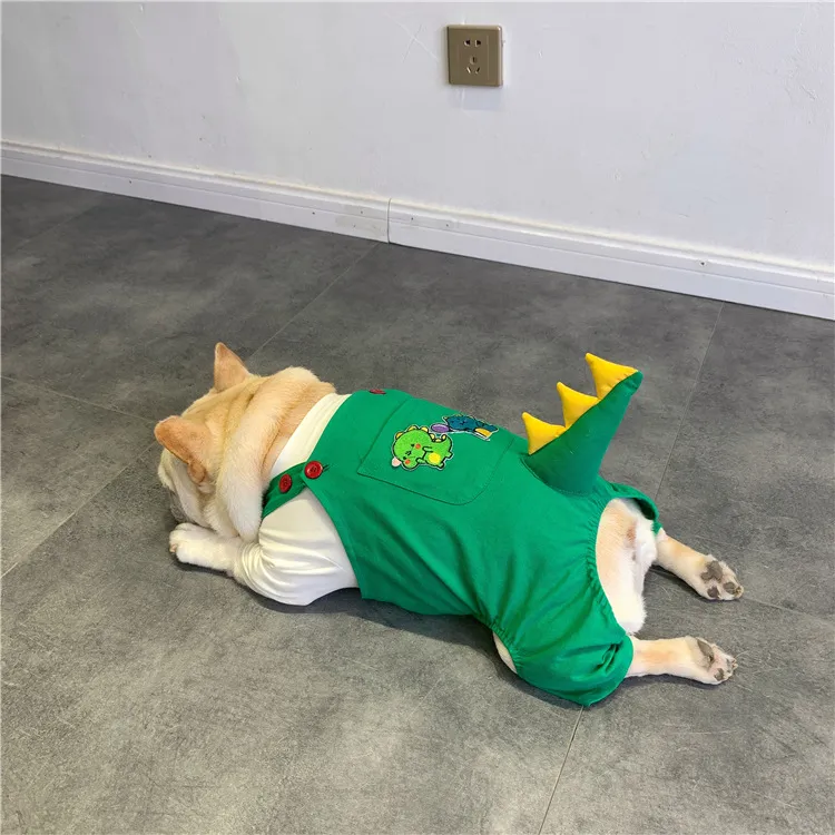 dogs, these clothes are as fashionable as they are functional. The unique dinosaur pattern adds a playful charm, while the suspenders bring a