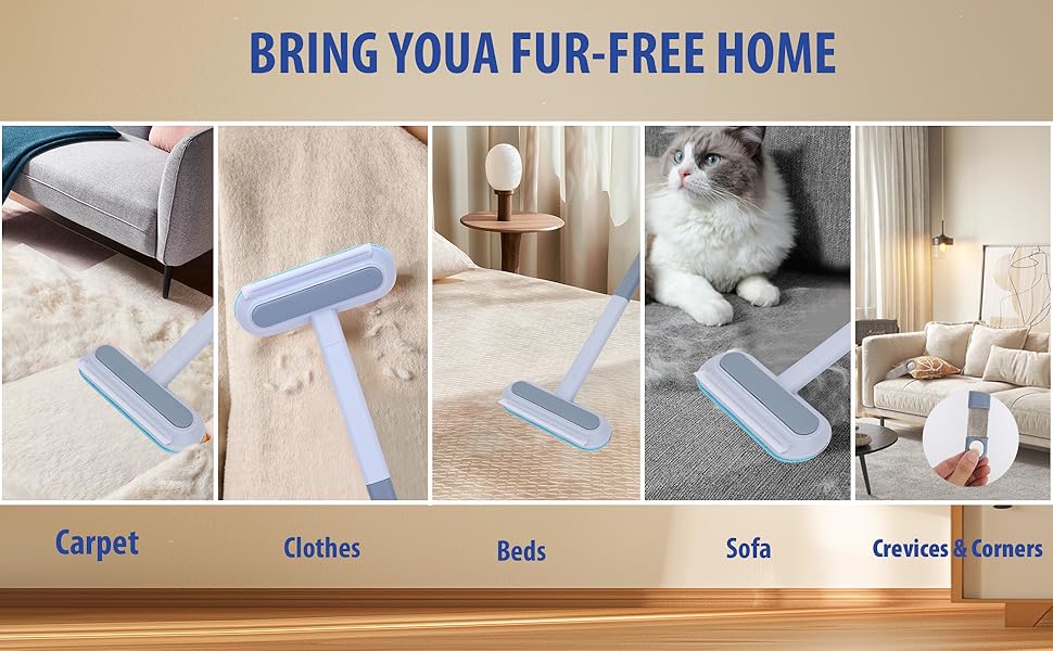 - 【Efficient Pet Hair Removal Tool】Bidirectional hair removal brush swiftly and effectively removes pet hair, dog fur, and cat fur from your sofa and furniture. Large fur cleaning area effortlessly removes shed dog fur, cat fur, and various pet hair