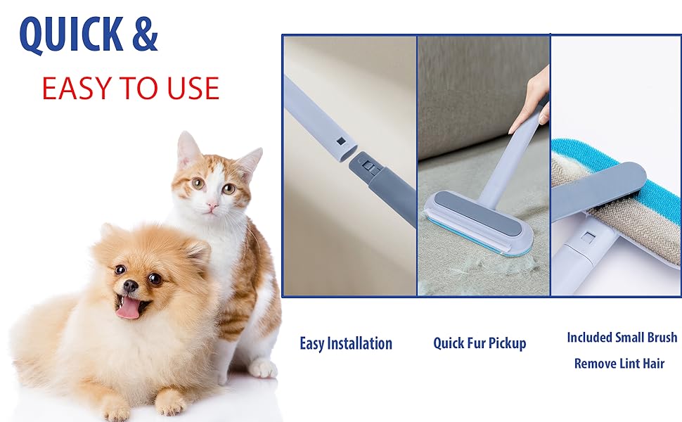 - 【Convenient Design for Effortless Operation】 This lint Brush for pet hair features a 17.3-inch total length, easily cleaning under sofas and behind beds. The 7.3-inch wide head removes hair effortlessly