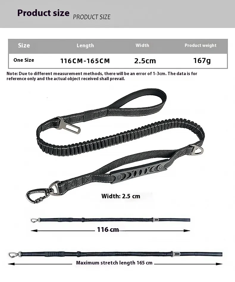 - Design: Retractable leash with shock-absorbing buffer.