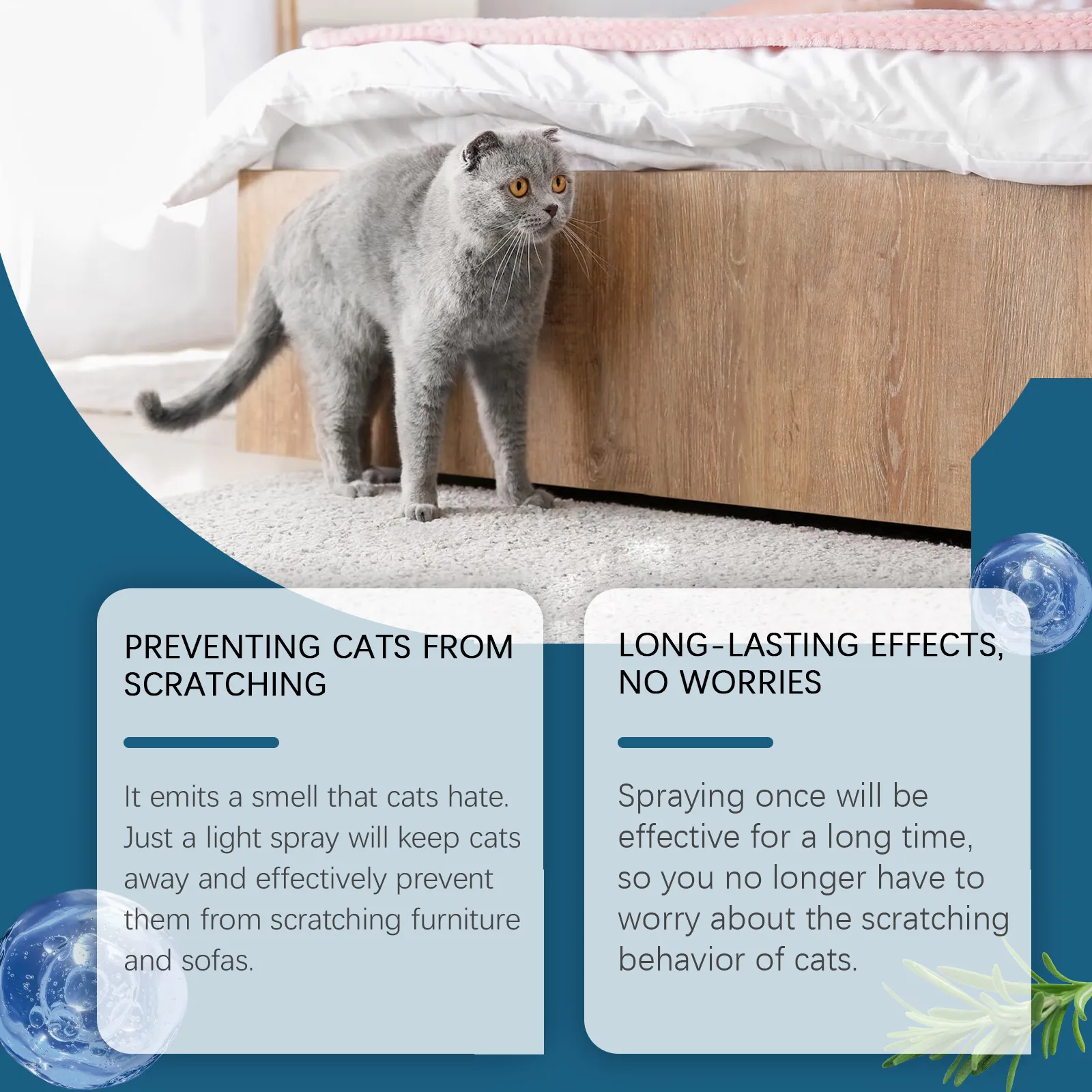 - Dual-Action Formula: Deters cats from jumping onto the bed while also repelling insects.