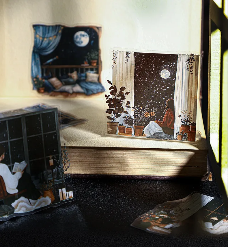 Color: 1 dream night tour, 2 night, 3 starry window sill, 4 starry night camping, 5 green window, 6 late night snow