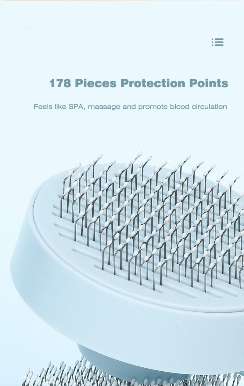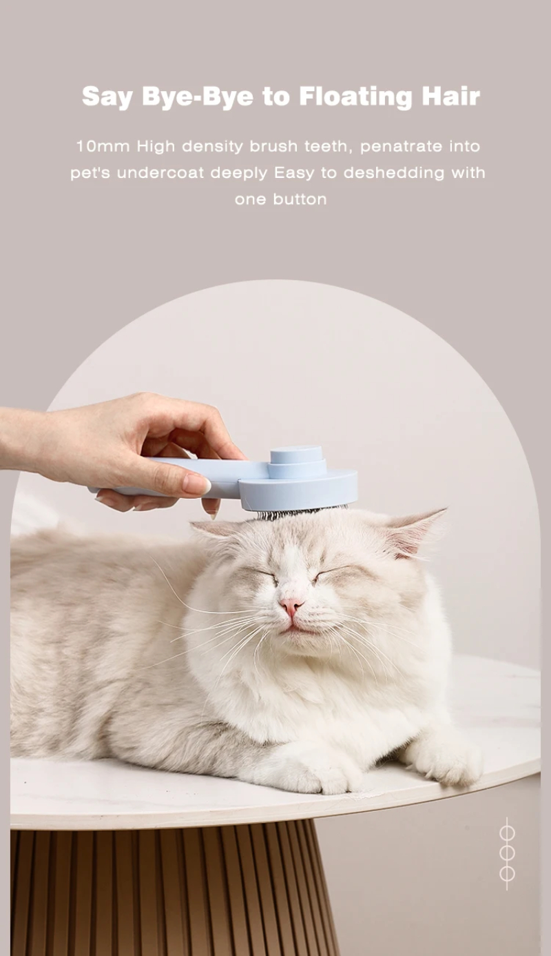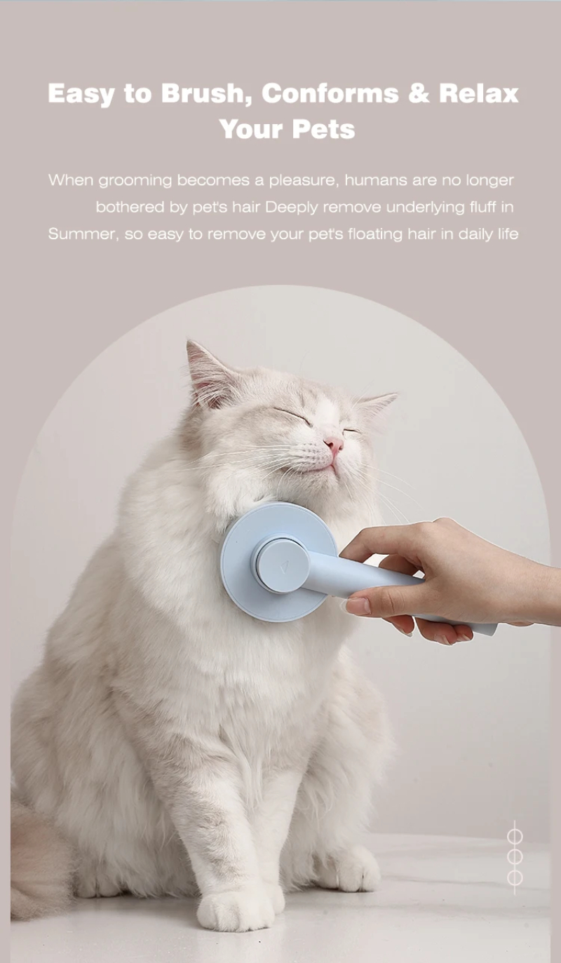 3. One-touch cleaning button: Press the cleaning button to retract the bristles and wipe away the hair. Hair falls out of the brush easily. Our pet brushes are washable to keep the brush hygienic.