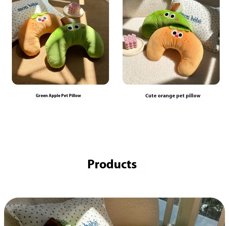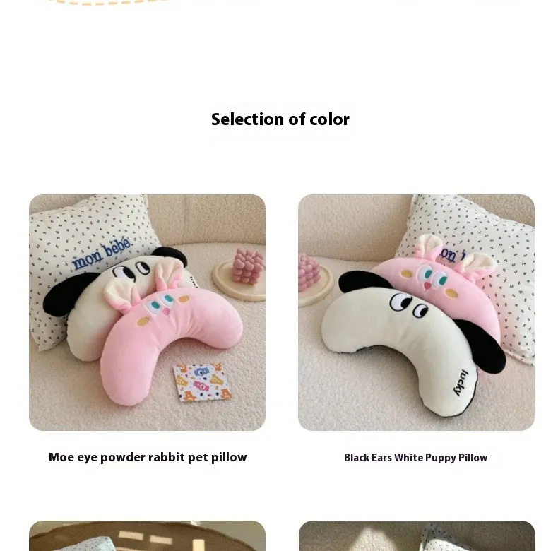 Color: green apple pet pillow, black ear white puppy pillow, cute eyes pink rabbit pet pillow, cute orange pet pillow