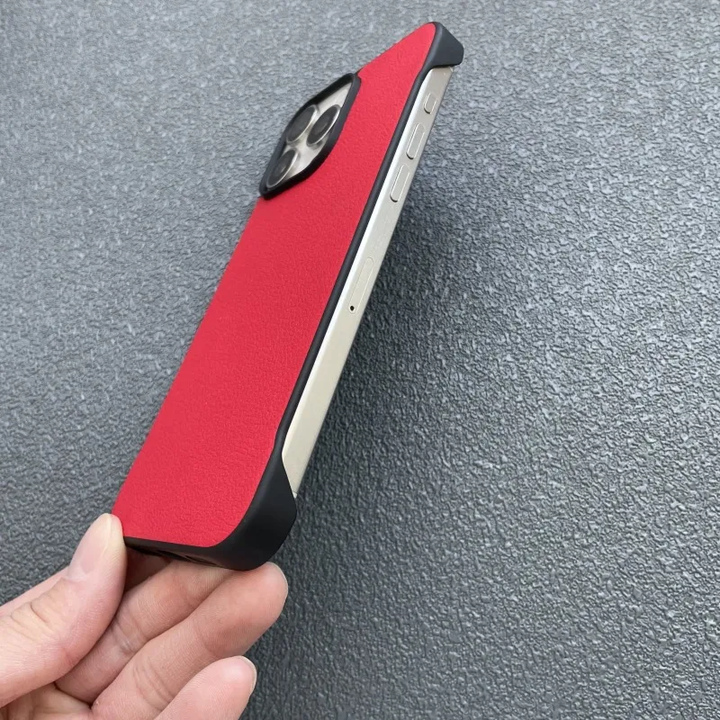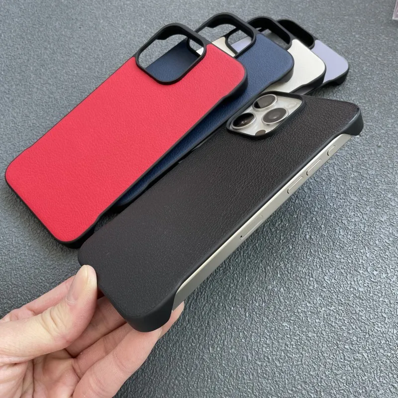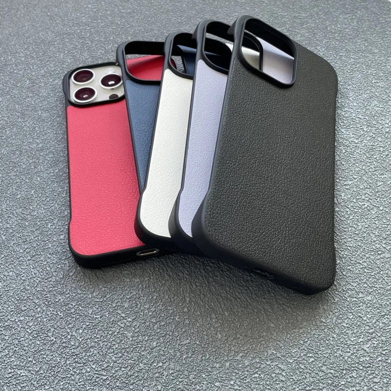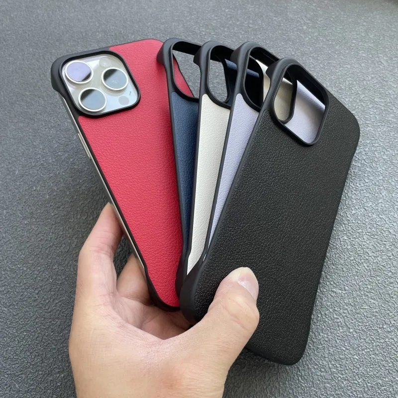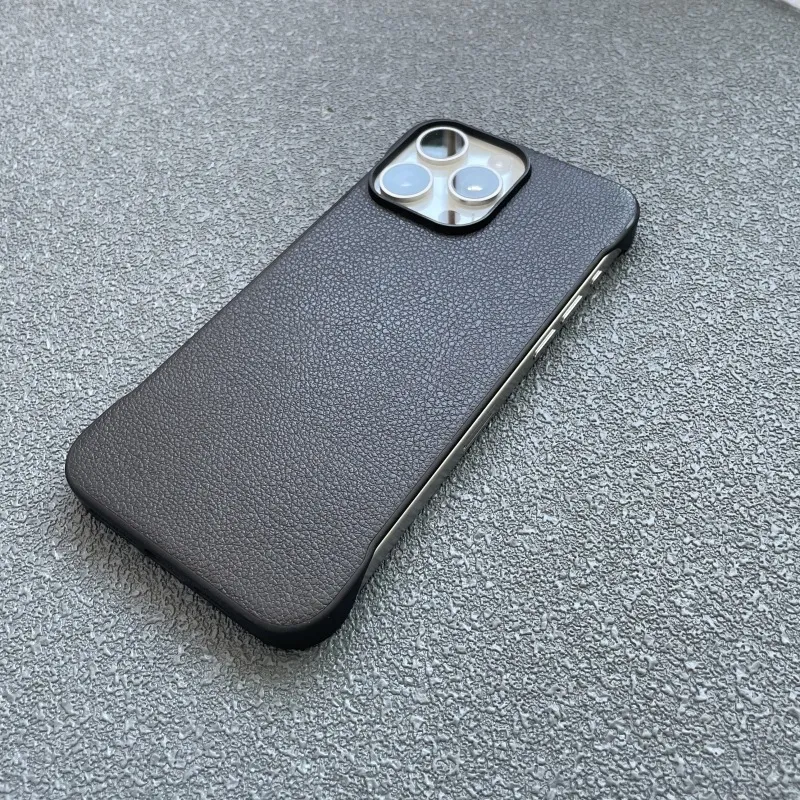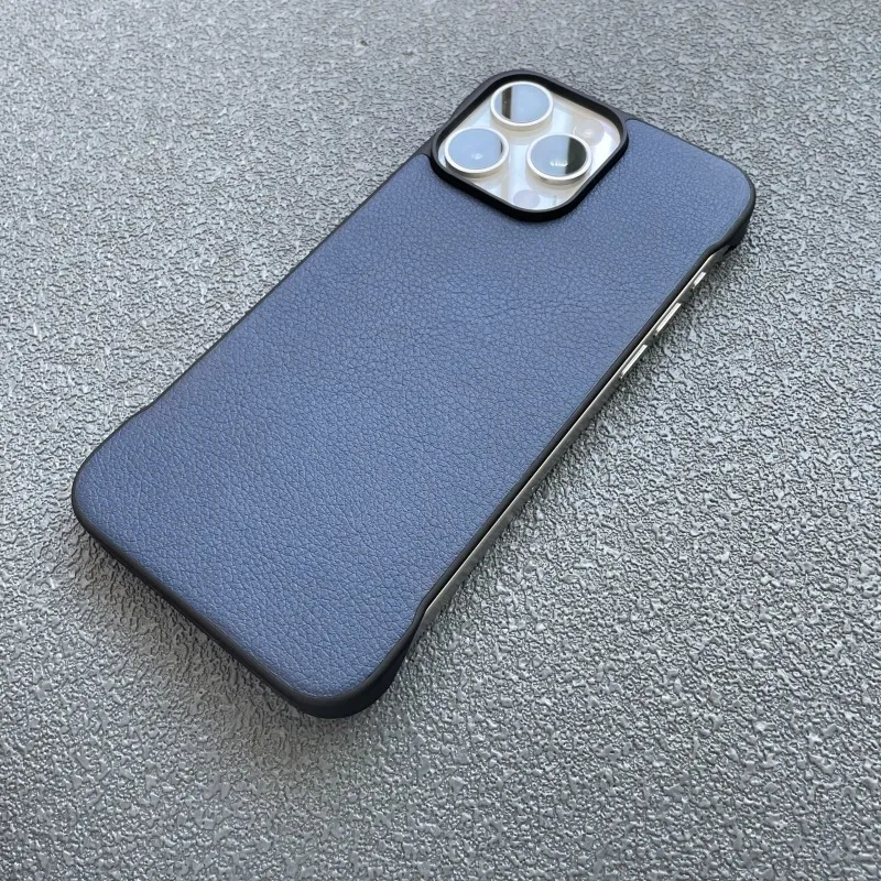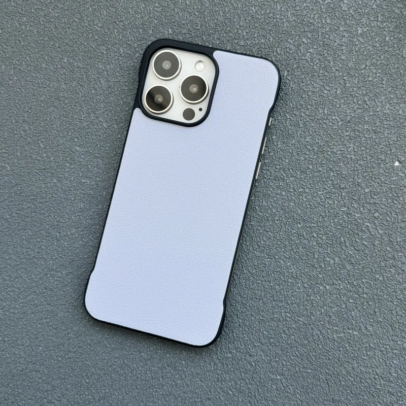 Crafted from premium leather, this frameless protective cover offers a sleek, minimalist look while adding a touch of sophistication. The soft yet durable material provides a comfortable grip and ensures your phone looks stylish in any setting.