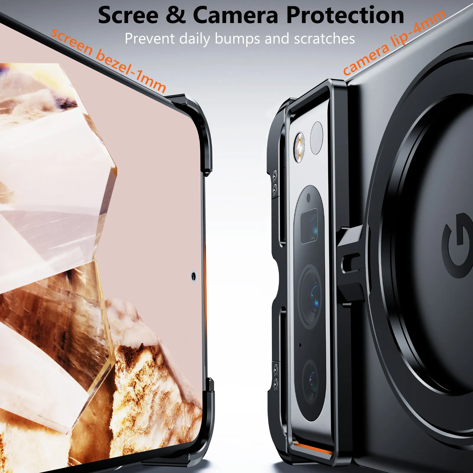 Constructed with high-quality metal and reinforced materials, this case protects your Pixel9Pro from drops, bumps, and scratches. The all-around coverage design safeguards your phone’s back, sides, and corners while maintaining a slim and sleek profile.