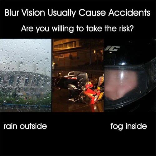 With heavy rainfall in the summer, it is extremely dangerous to ride a motorcycle with an obstructed view!