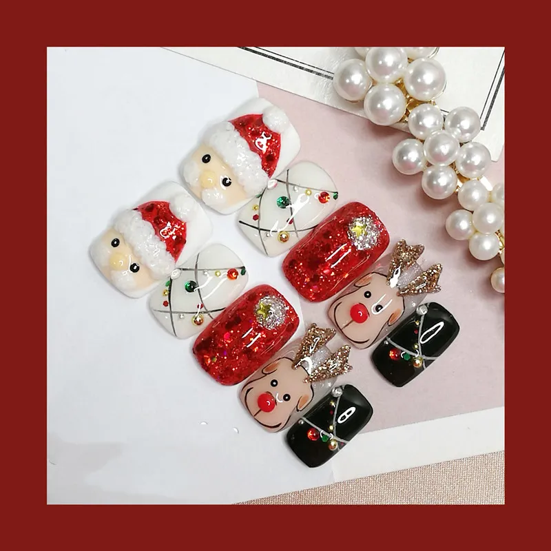 Their compatibility with UV/LED phototherapy ensures a long-lasting and glossy look, while the handmade finishing guarantees vibrant, precise, and unique designs. Perfect for Christmas parties, gatherings, or gifts, these nail patches bring convenience, style, and holiday spirit to your manicure.