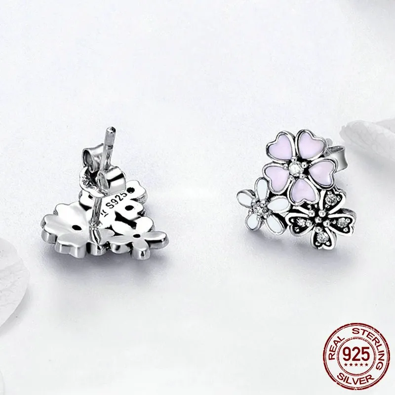 Pink Flowers Blooming Oil Drop Earrings