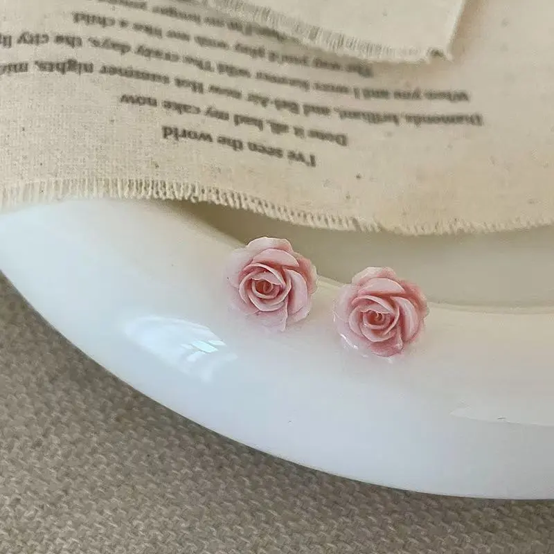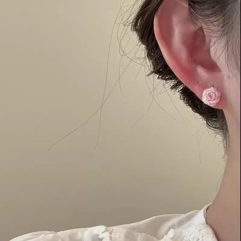 Pink Rose Stud Earrings For Women Sweet And Small Unique Personality