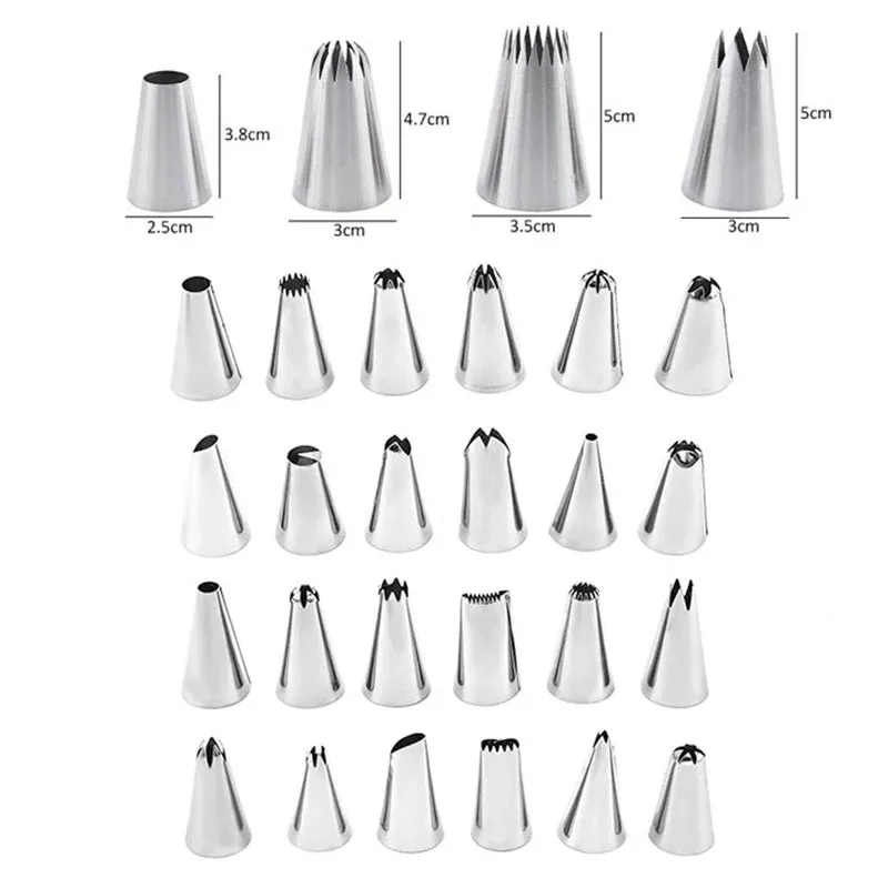 Even a basic set can turn a plain cake into a showstopper. The nozzles, made from durable stainless steel or food-safe plastic, come in various shapes to help you create different textures and patterns—from fine details to bold piping.