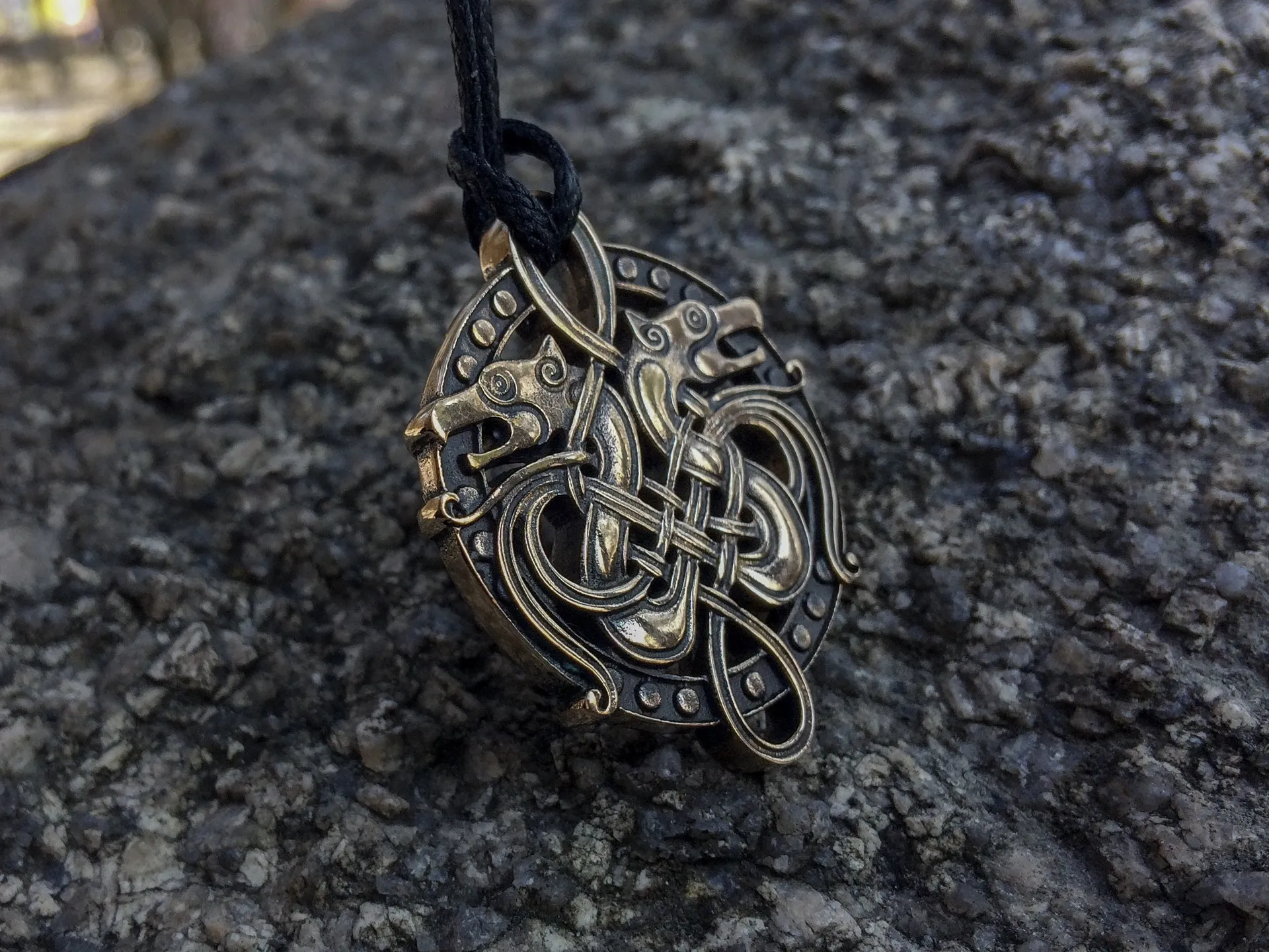 Pirate Viking Double Wolf Head Pendant Necklace